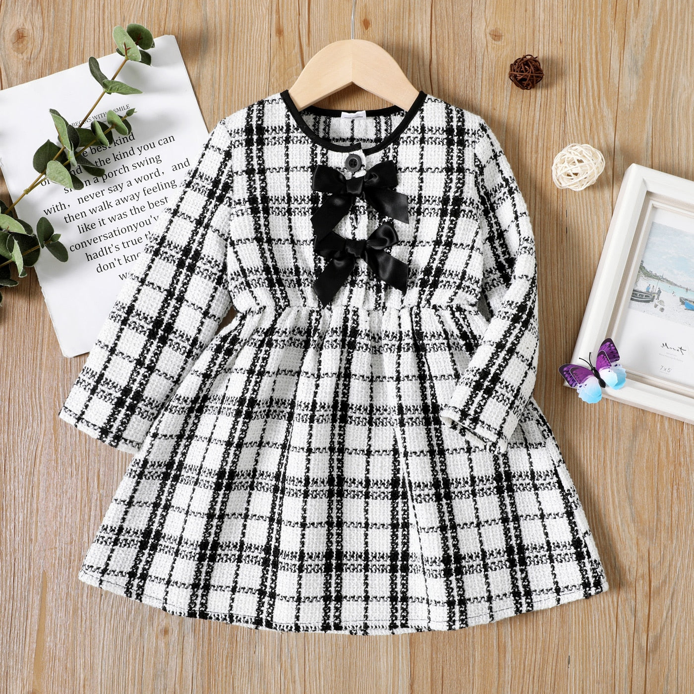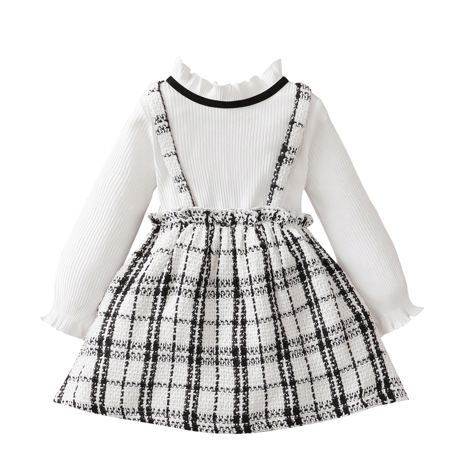 Baby Girl Dress with Pleated Collar - Long Sleeve and Tweed Style
