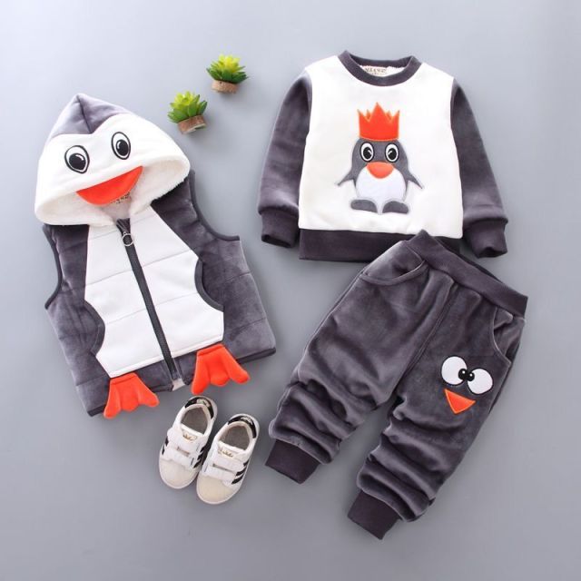The Baby Velvet Set Penguin outfit is available in dark grey, for newborns to 4 years old toddlers and is perfect for the coldest days. The set is beautiful and the touch of cuteness is the hood with penguin head.