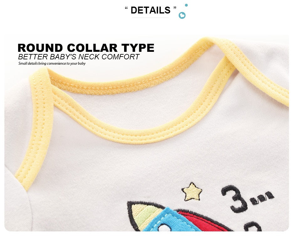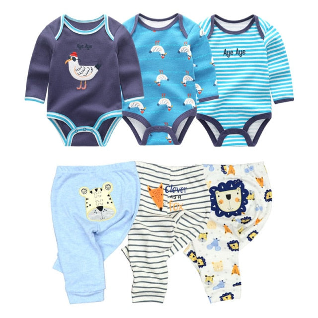 How about choosing a classic set of cotton clothes for your baby with several different prints and a cheap price?