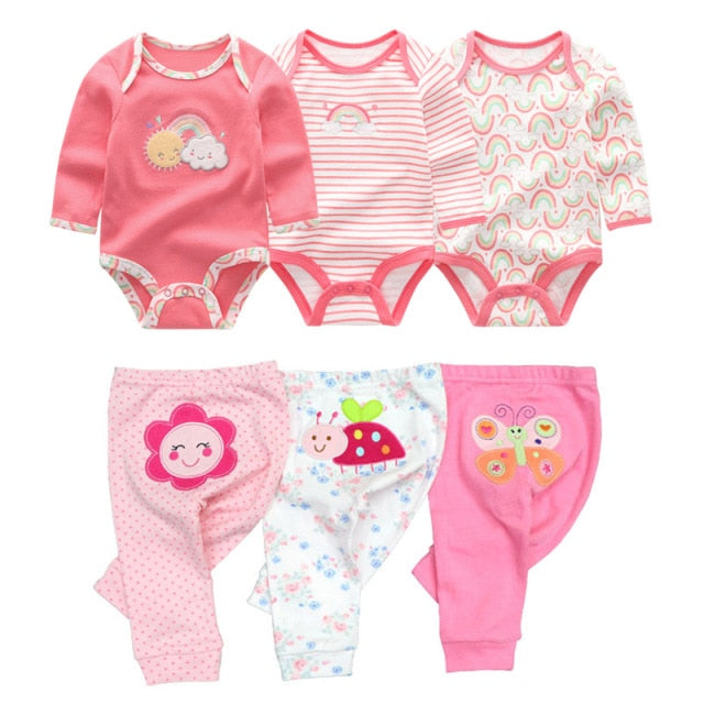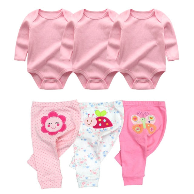 Baby Cotton Set Outfit - Pants and Long Sleeve Romper - 8 and 6 pieces package