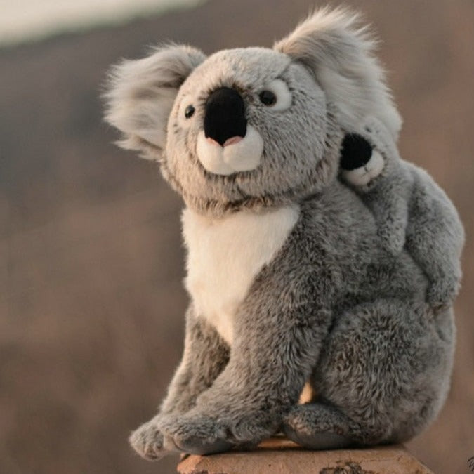 Our adorable plush mommy koala, premium model, super cute, with baby koala on the back. Plush Toys (35cm sitting) is identical to the real ones and a perfect decoration for your children's room, as well as a beautiful gift for your loved ones.