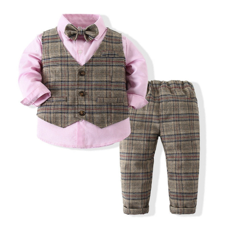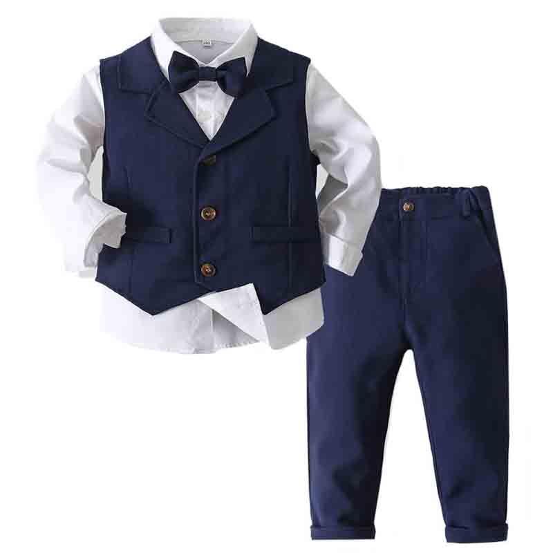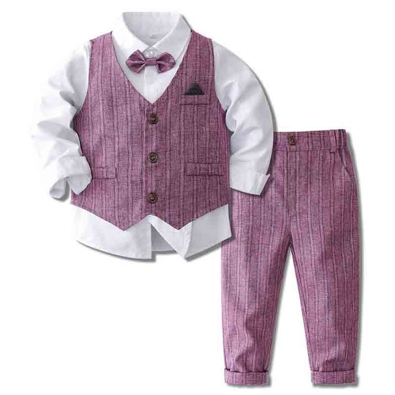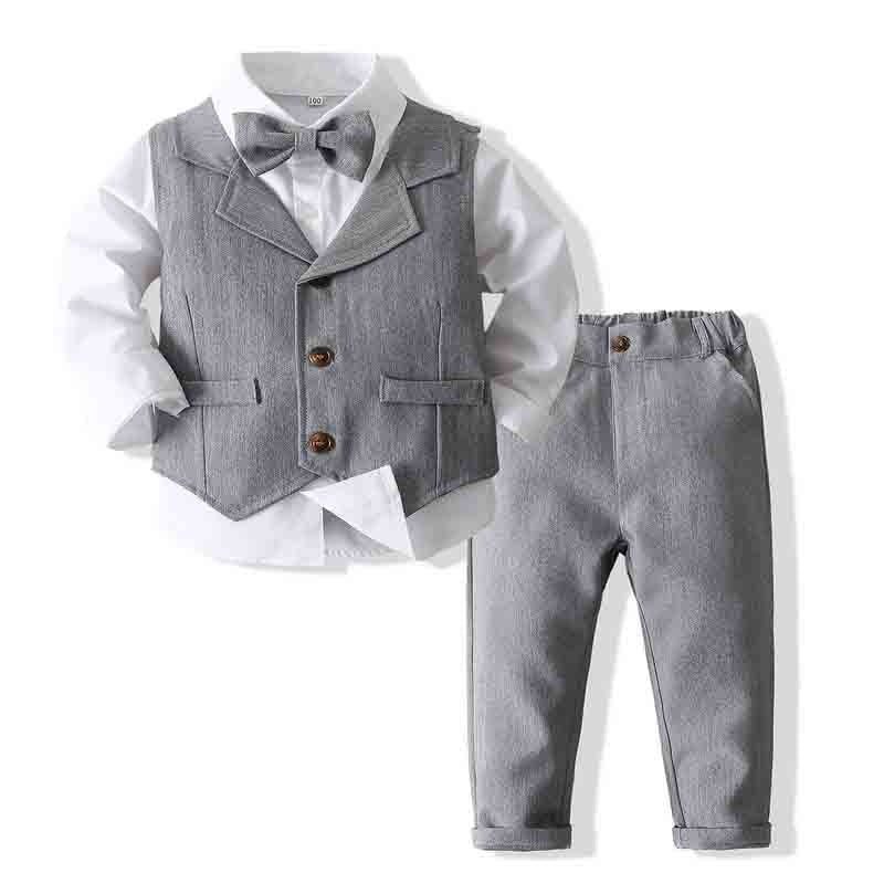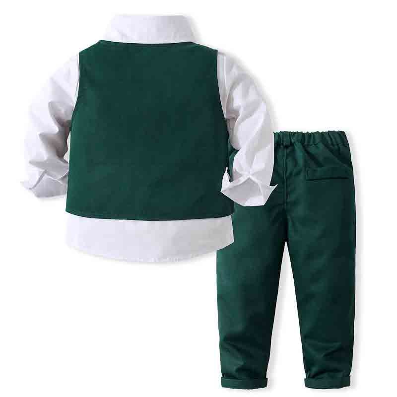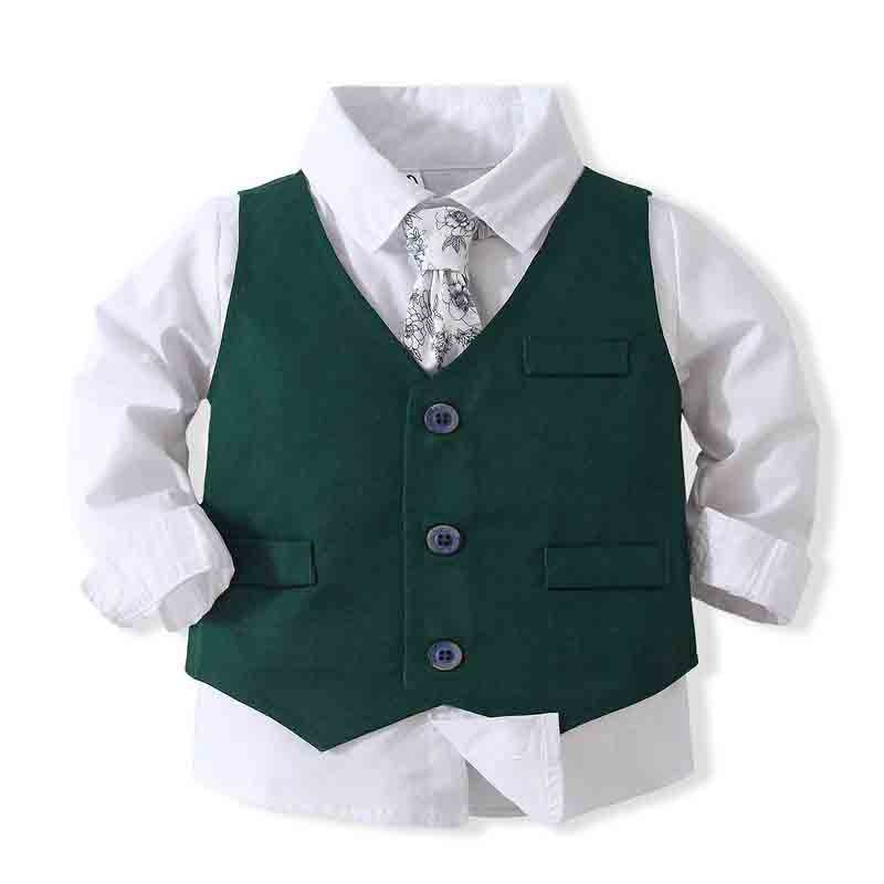 Gentlemen Boys Formal Outfit Set - Long Sleeve Shirt, Vest, Pants and Tie