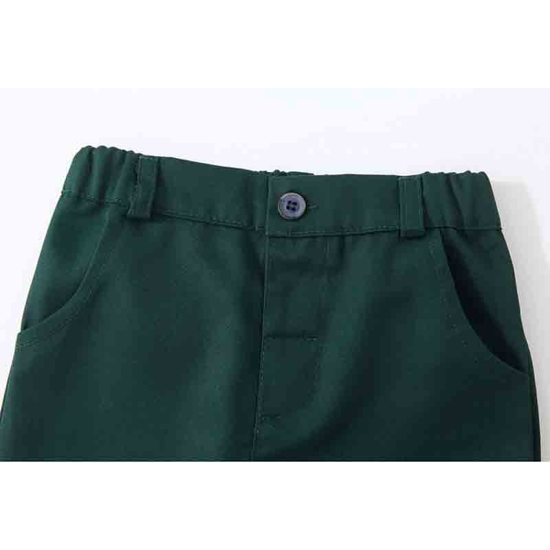 This unique set of formal wear for boys offers elegant sophistication. The notched collar and flat-front trousers ensure a smart look for any formal occasion, while the elastic waist closure ensures comfortable all-day wear.