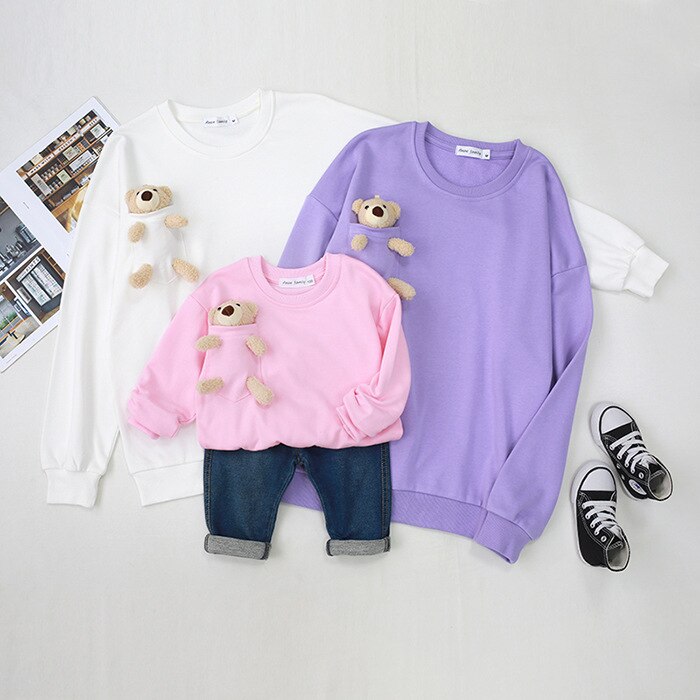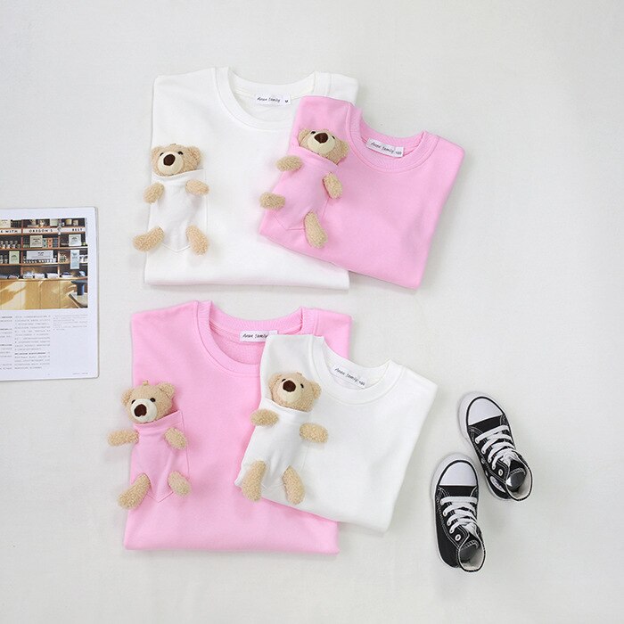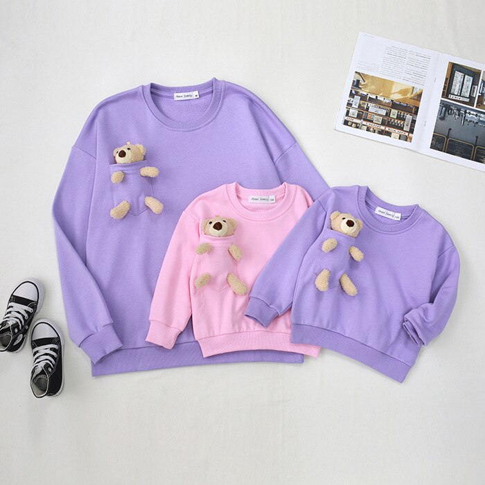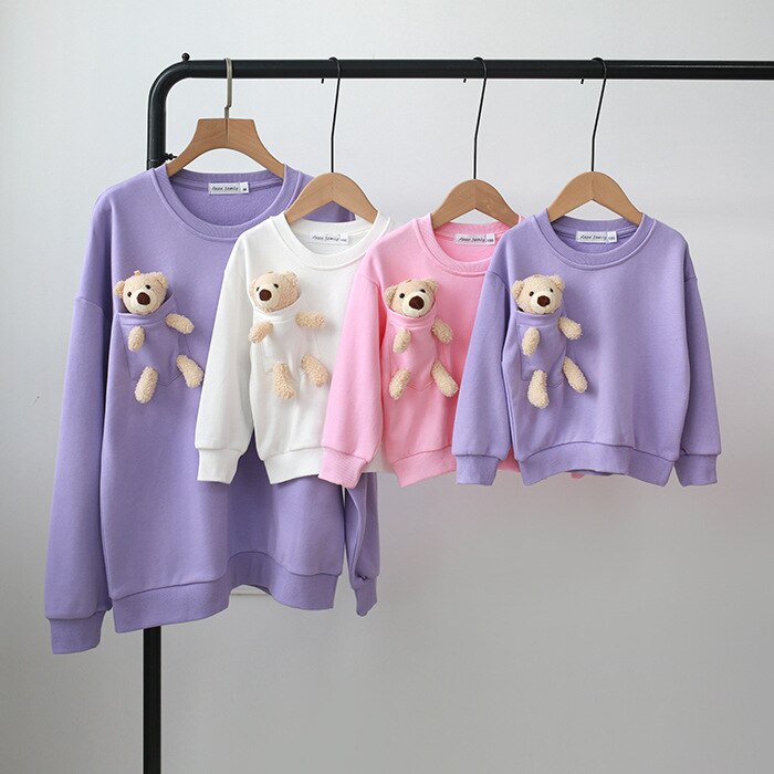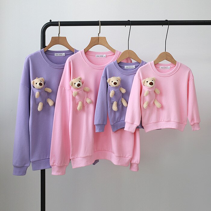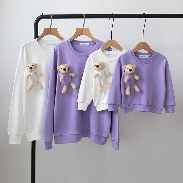 These matching sweatshirts are super comfortable and perfect for spending the weekend at home with the family. To complete the cuteness of these lovable tops, a cute teddy bear is sticked as an ornament. Everyone will love it!