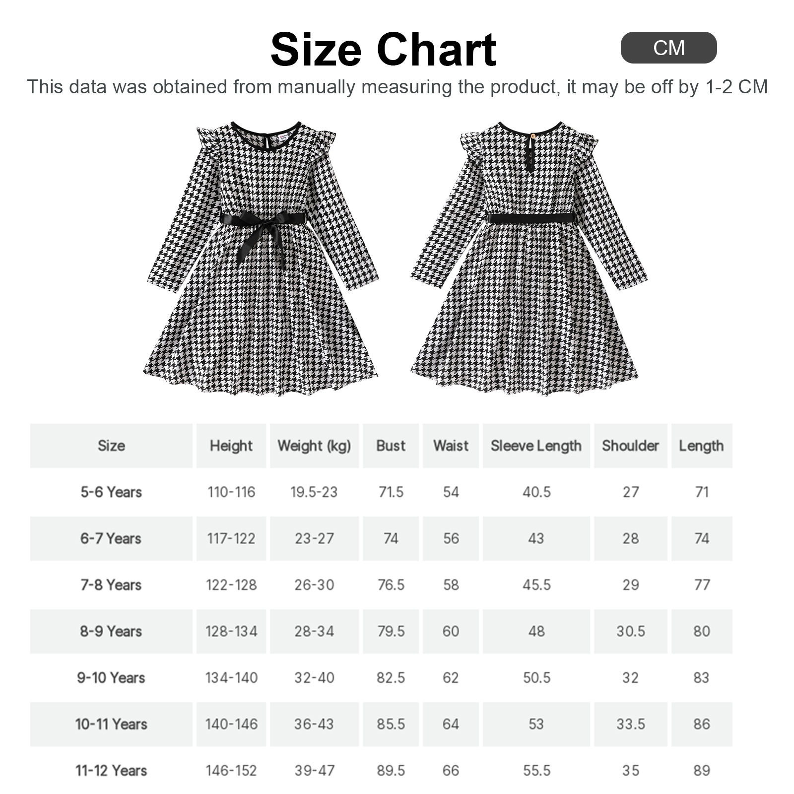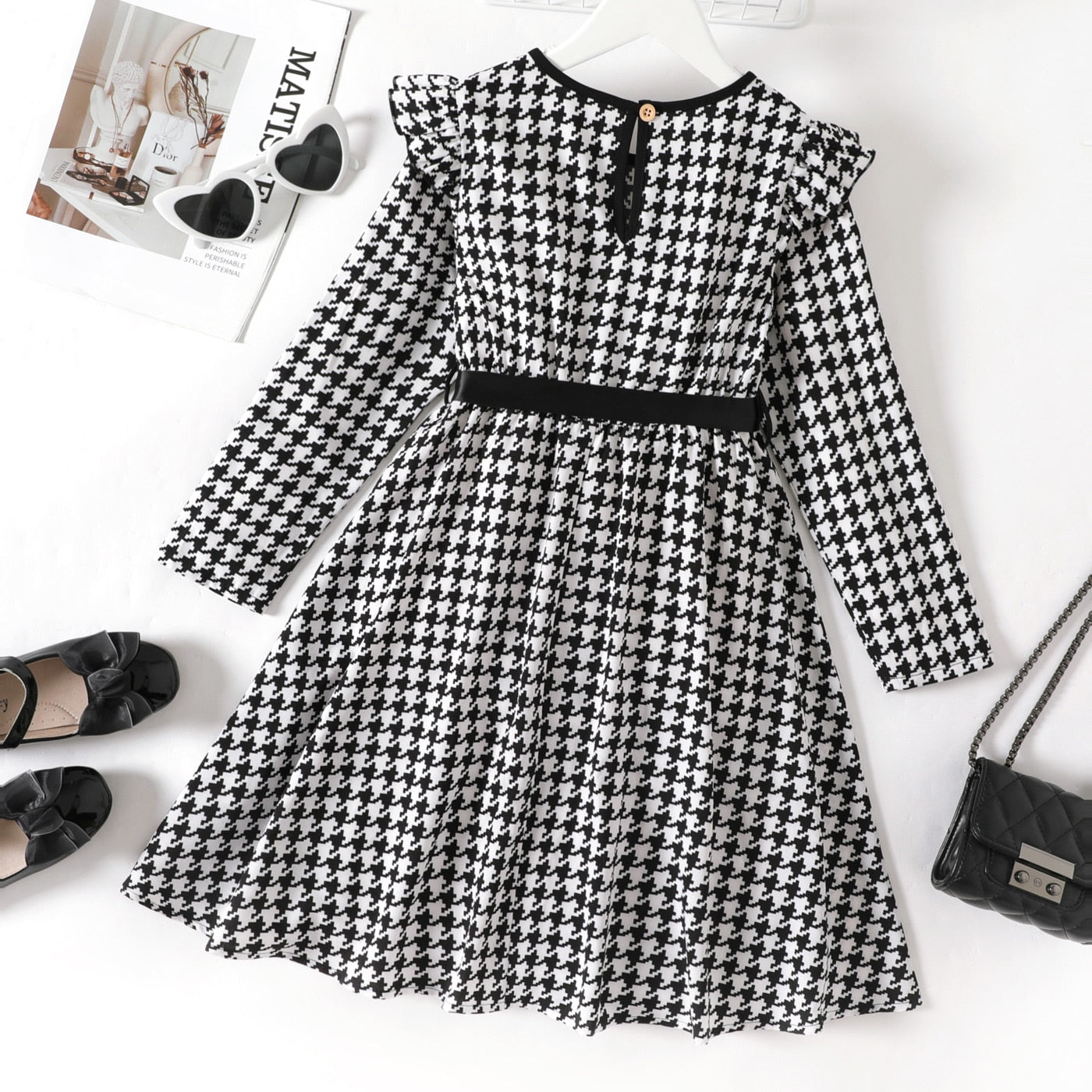 Elegant Black & White Girls Dress Tweed Print