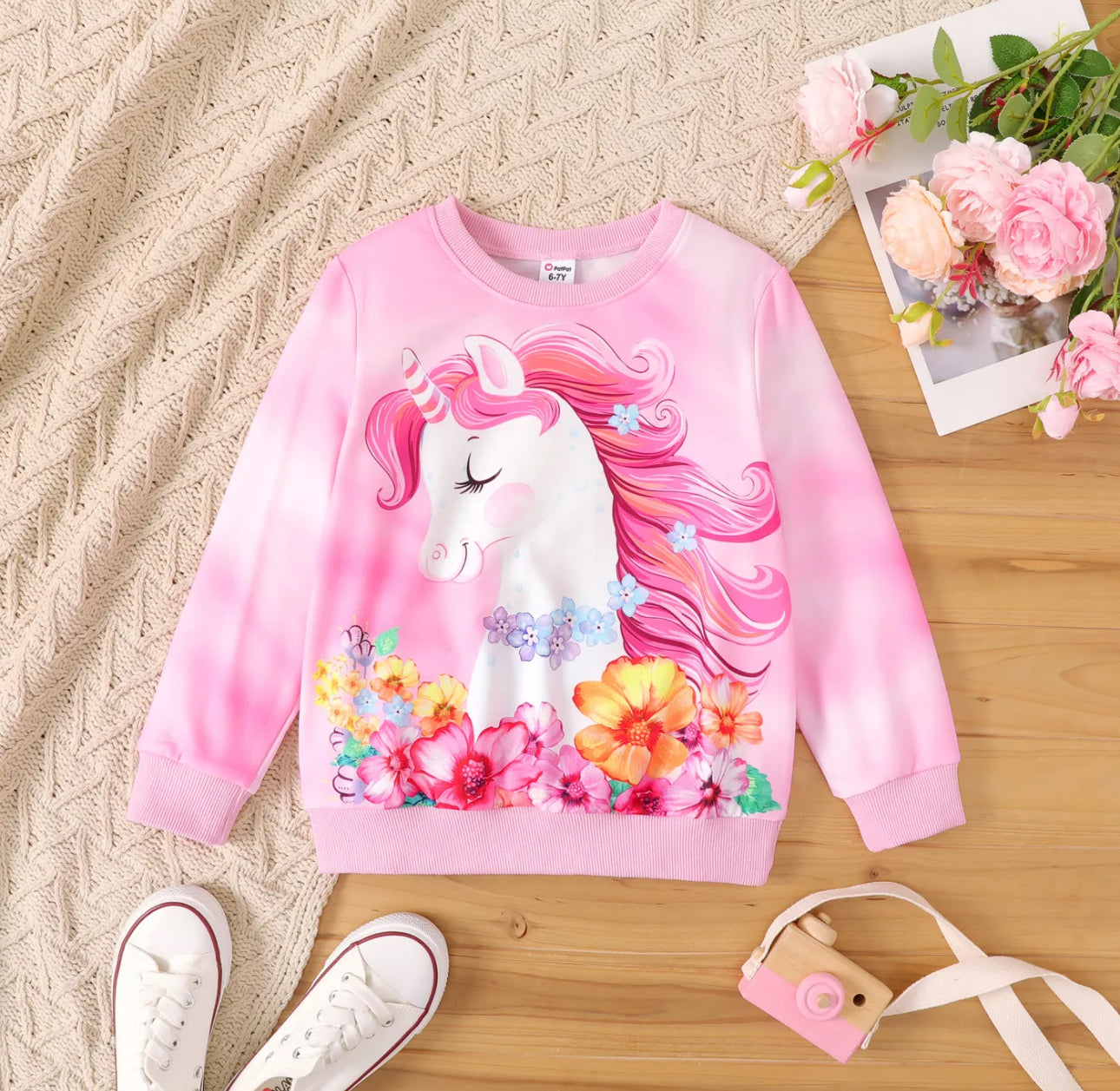 The Girls Pink Unicorn Print Sweatshirt is lined with warm and cosy fleece, and adorned with magical illustrations. Its O-neck collar makes it perfect for comfort and style!